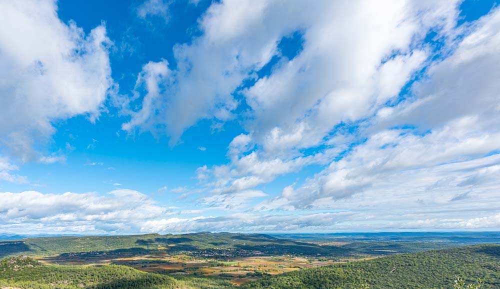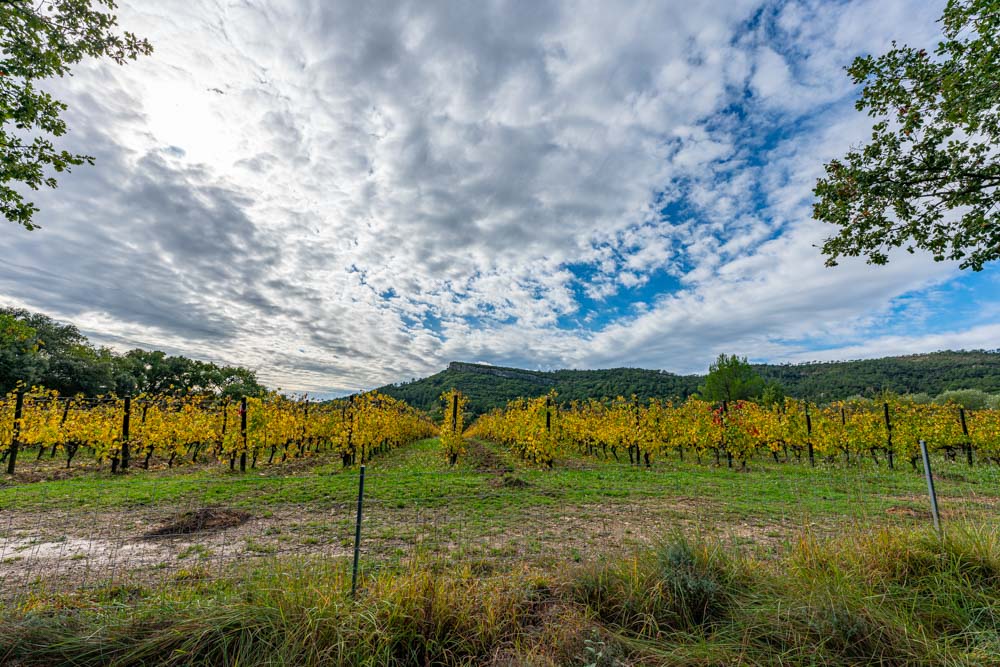 Pic St. Loup in the distance right side of image. I was shooting in 14 mm wide angle today so it looks much farther in the distance. In reality, its only about 8 kilometers.
