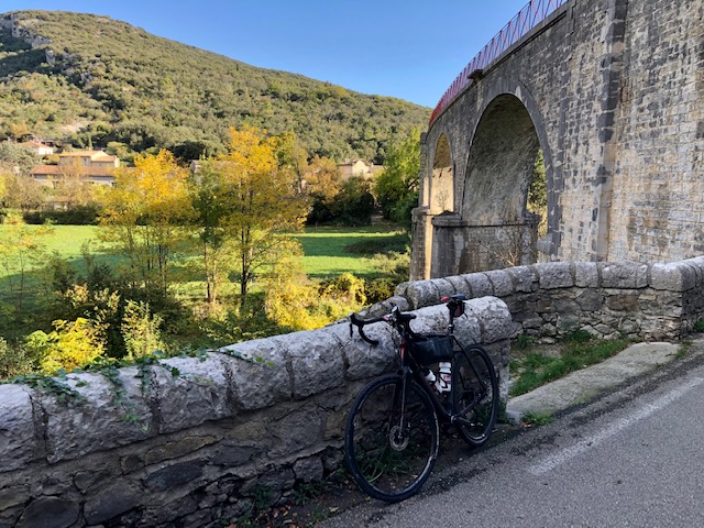 Almost immediately after passing under the viaduct in Saint-Hippolyte-du-Fort, things started to climb and the road started getting good, real good.! This is the D169.