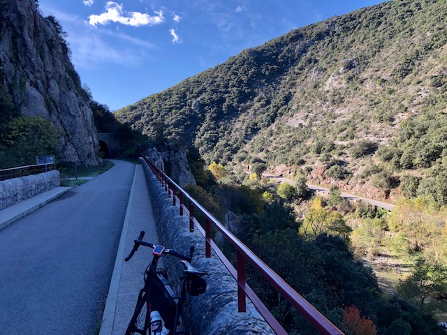 At the bottom of the decent, in the town of Sumene, I expected to be on a busy road down into Ganges. But no!!! Rail to trail!!!!