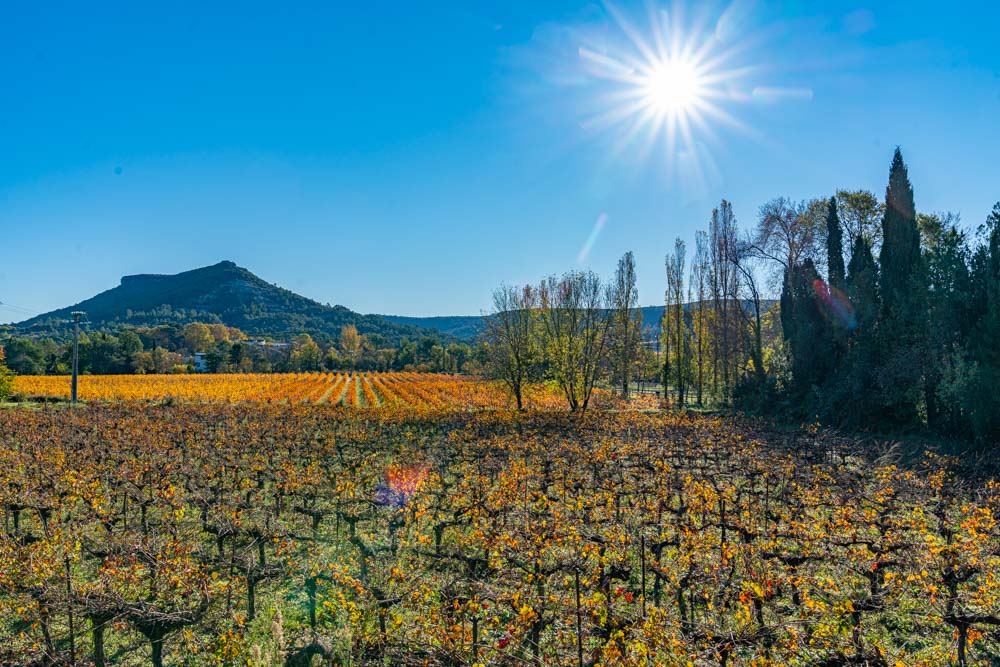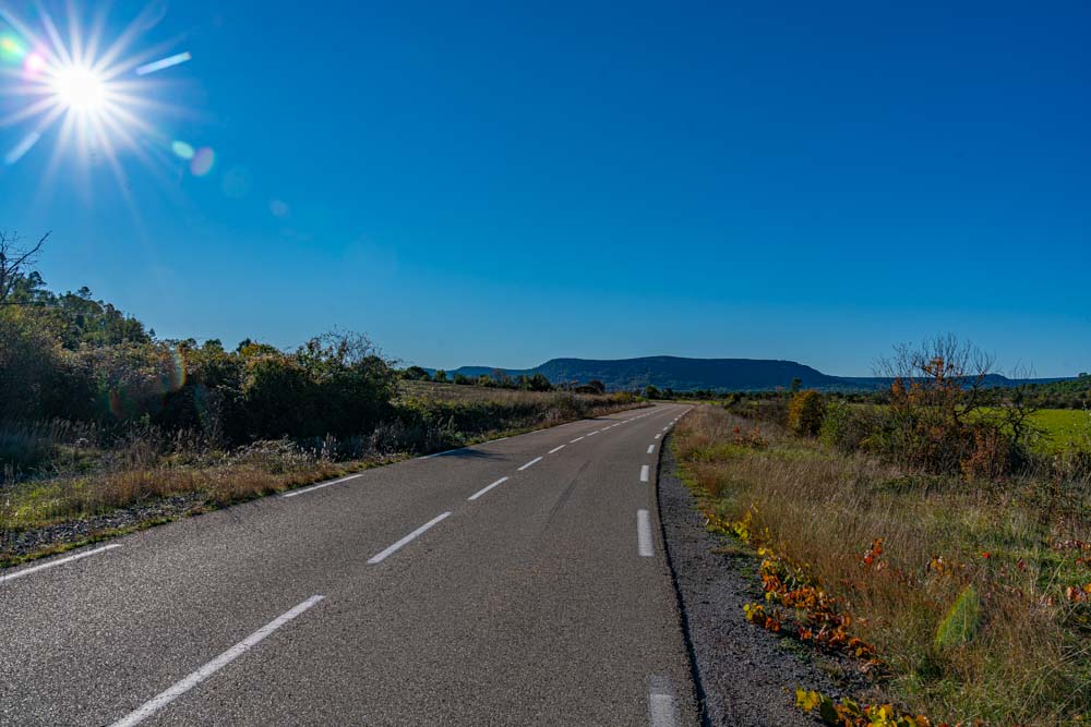 The plan today, do an out and back to the end of the D181 which is not too terribly far, flip it back to Pompignan and go finish with the south part of the D181. Right off the bat, incredible light in the vineyards.