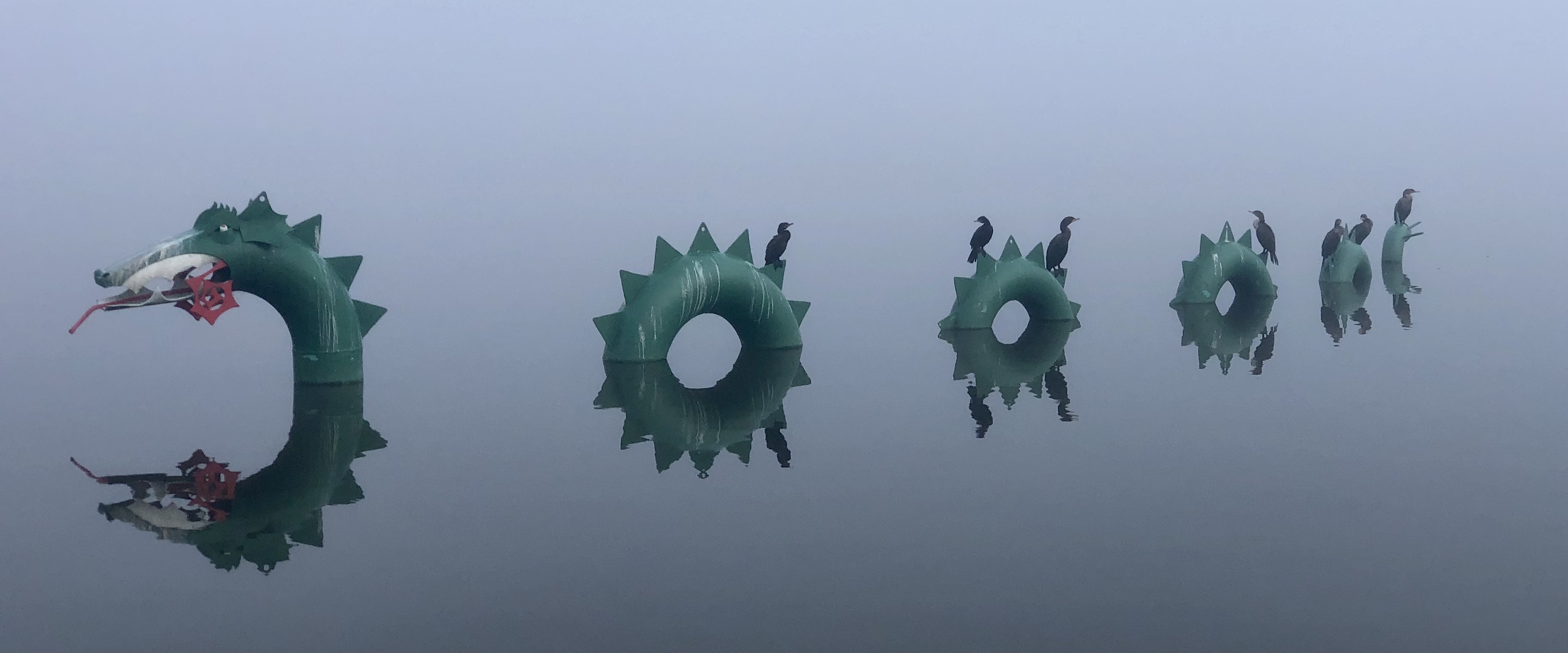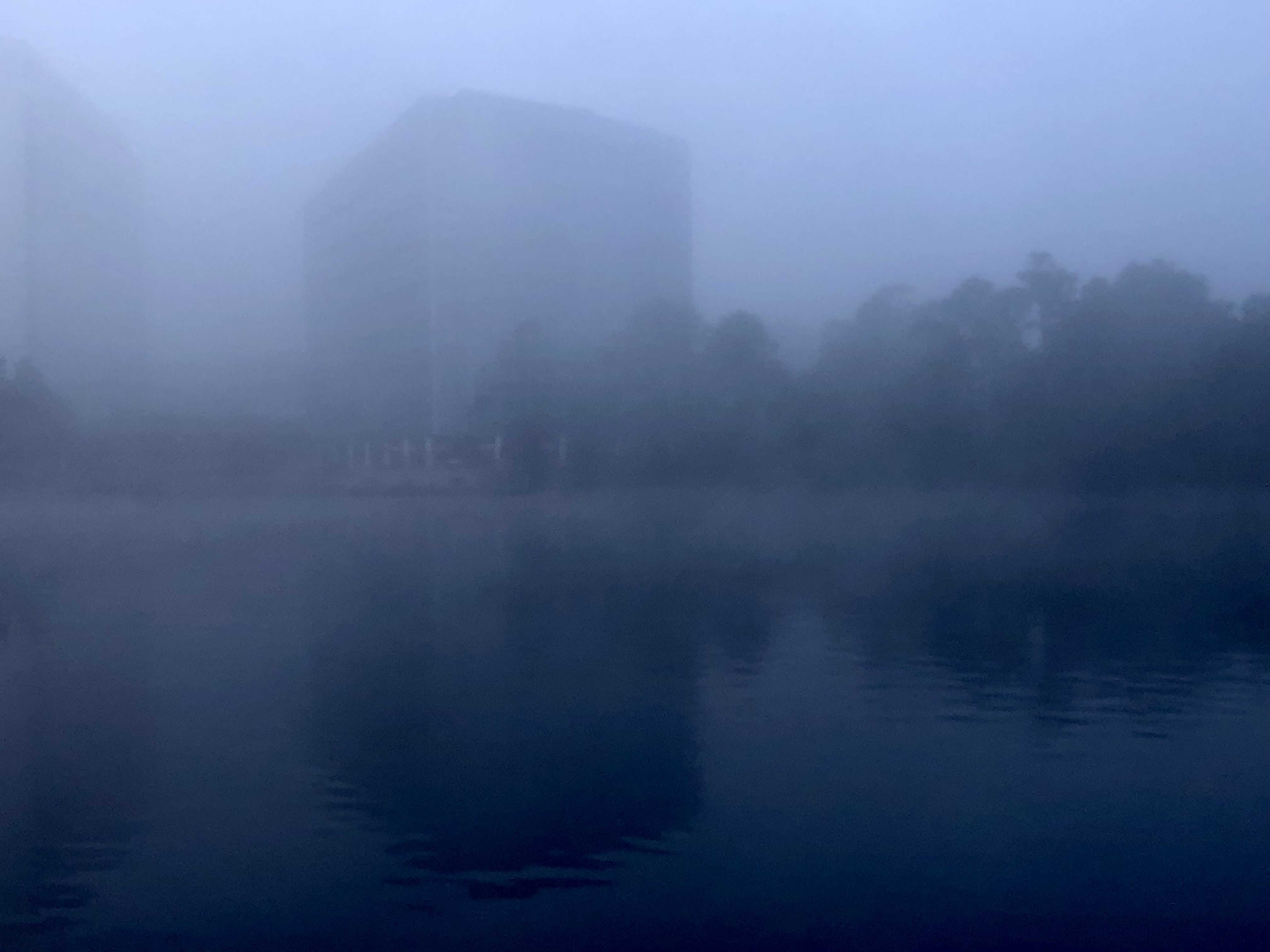I have photographed this sculpture a few times, it seemed a little more mysterious in the misty morning.