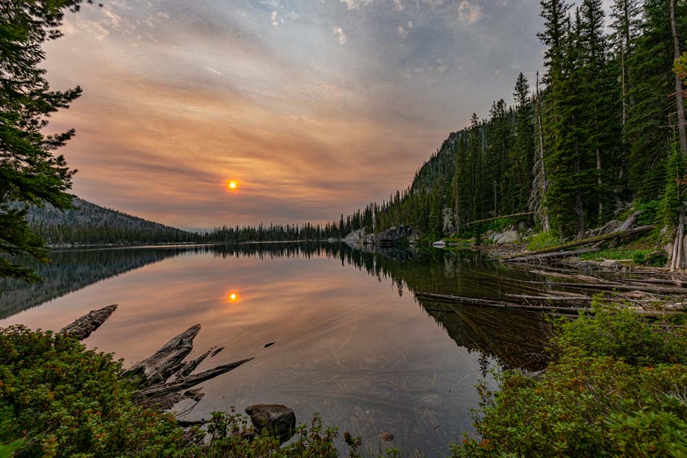 August this year was filled with many fun trips and a bunch of images. It provides a time of year in which the daylight hours start to shrink yet the temperatures remain warm. Add a little smoke for tint and high country fall colors to get fun photography. As a result, I had a bunch of runner ups: 1) Mid-summer thunderstorm over Lake Payette; 2) The Milky Way over downtown McCall; 3) Sunrise on Nick Lake; 4) Early Fall Colors up the Middle Fork of the East Fork of the Lake Fork of the Payette River; 5) Middle Fork Lake as seen from Gun-notch Saddle.
