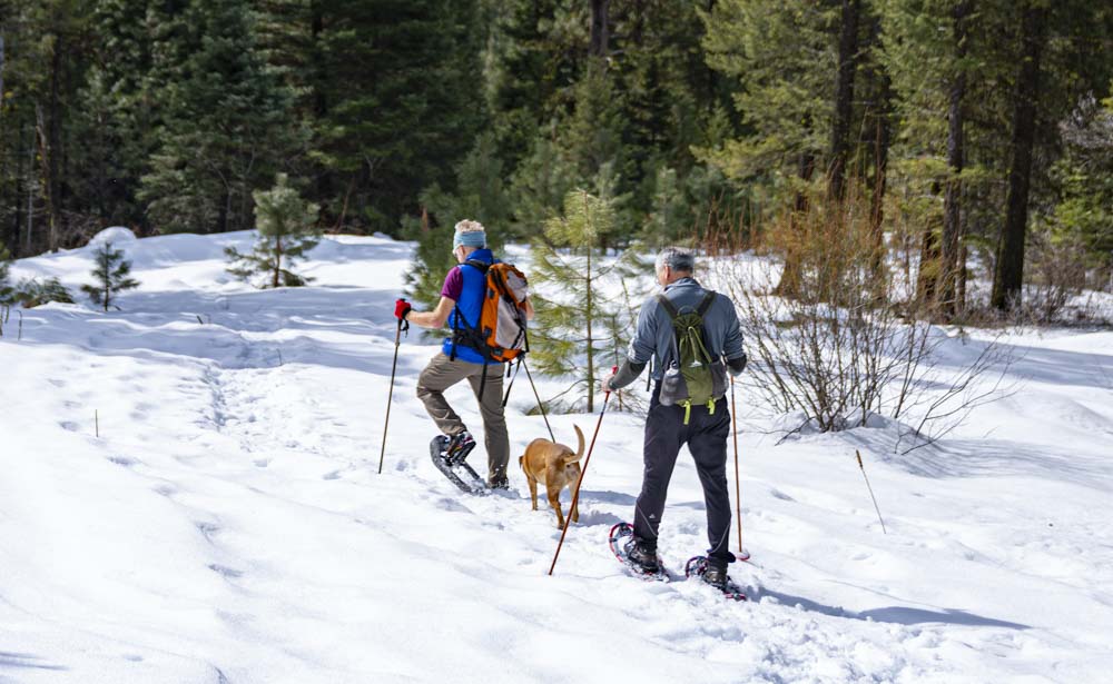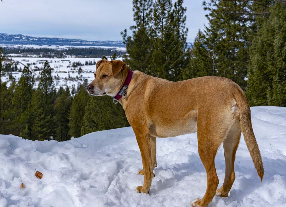 We had a beautiful winter day here in Idaho so Brian, Art, Ruby and I opted for a mellow hike around Jughandle Mountain Ranch. Notice Brian in short sleeves!