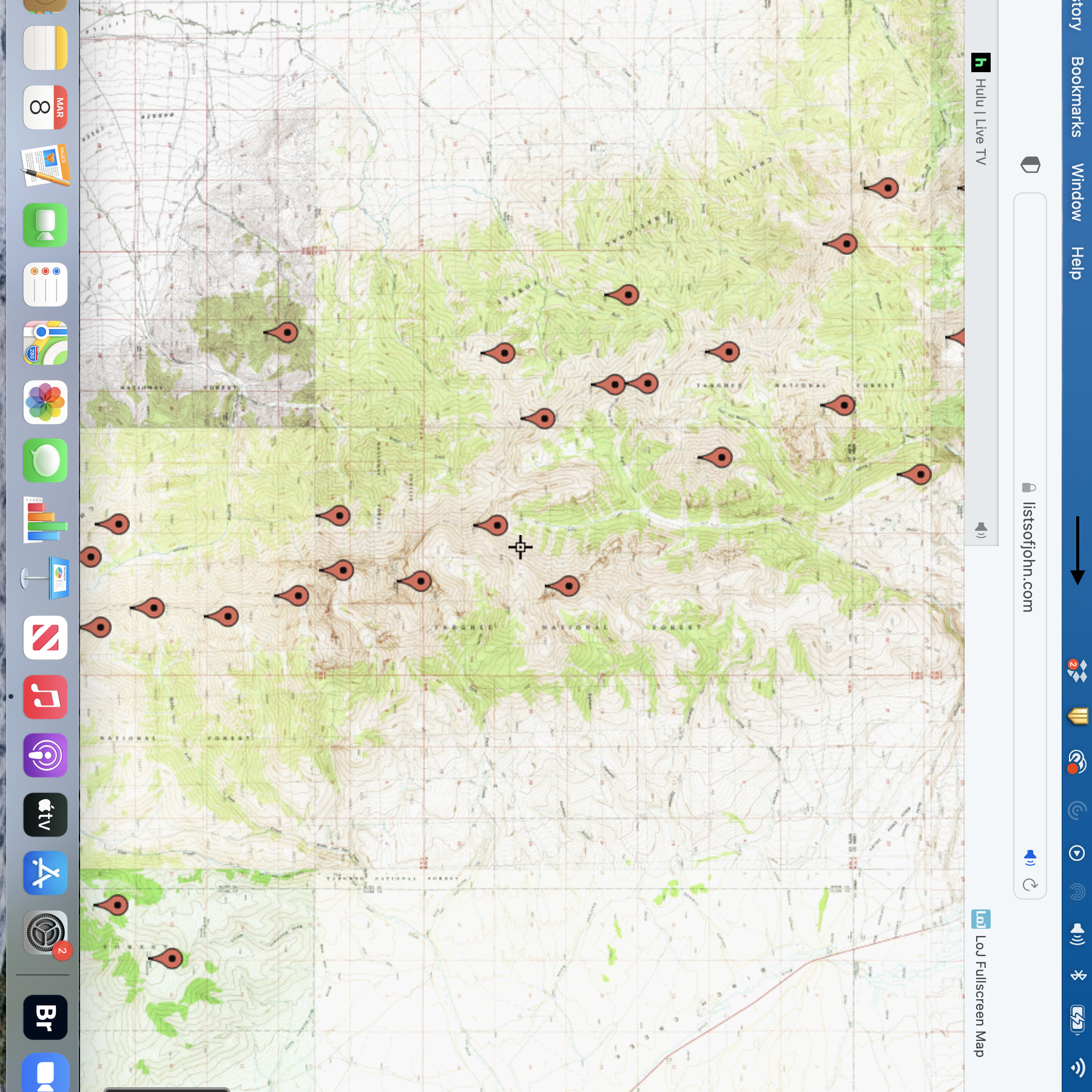 Here is a map showing the peaks in this area roughly oriented the same as the image above. John had climbed a bunch of them. Check out his Bell Mountain trip report here: