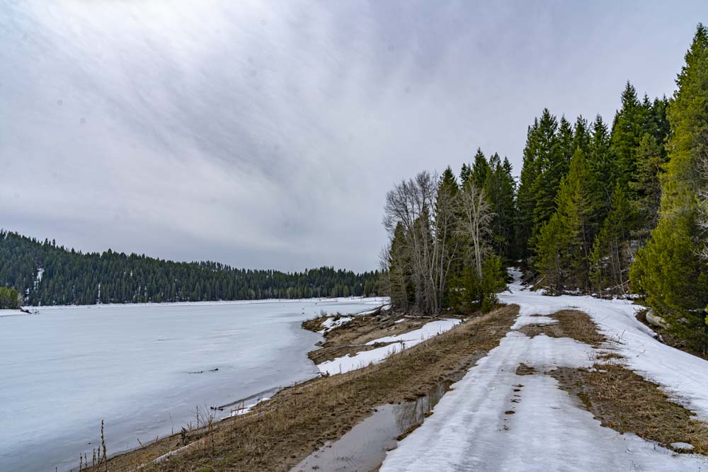 These are areas I frequently visit either on skis in the winter or by bicycle in the summer. This image is very representative of trail conditions around McCall in April……snow, ice, and mud! Conditions not good for skiing or biking and barely passable hiking.