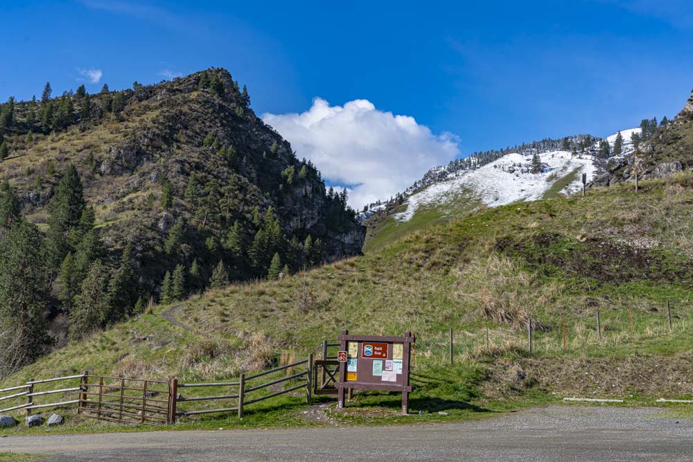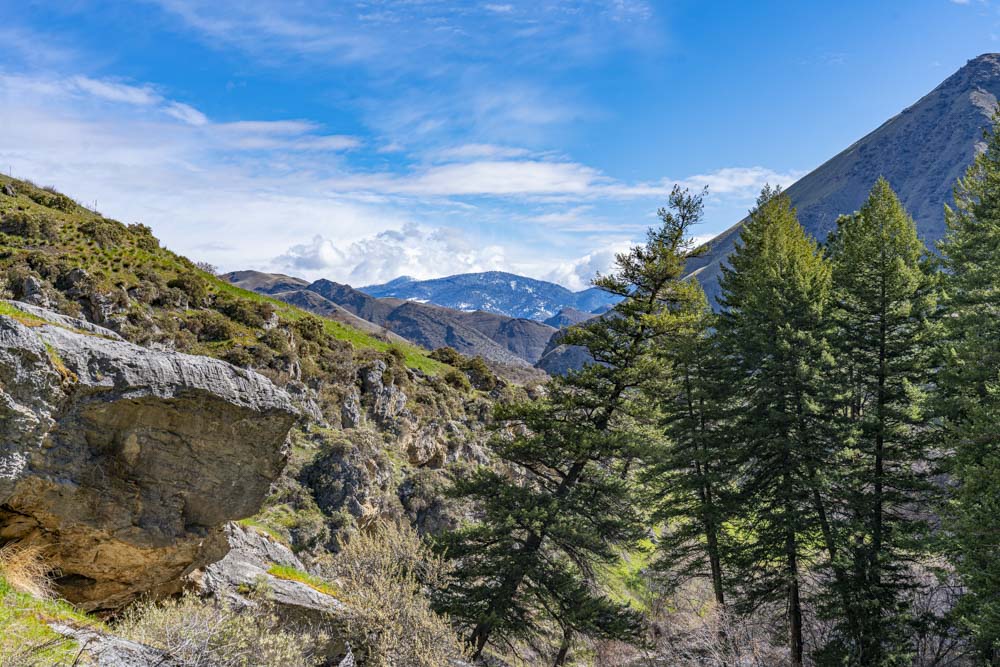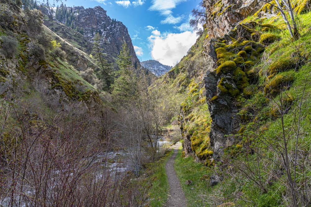 We finally had a slight break in our continuous spring storm and I was itching to get out of the winter weather. An hour’s drive down into the Salomon River Canyon results in dropping below the snow line. The elevation in McCall is around 5000 feet, here at this trailhead, it’s about 2000 feet. Rapid River has a beautiful ribbon of trail into a tight feeder canyon of the Salmon River. This image was actually shot on the way home but it shows how close the snow line is to the bottom of the canyon. It also shows that our spring storm is not quite finished!