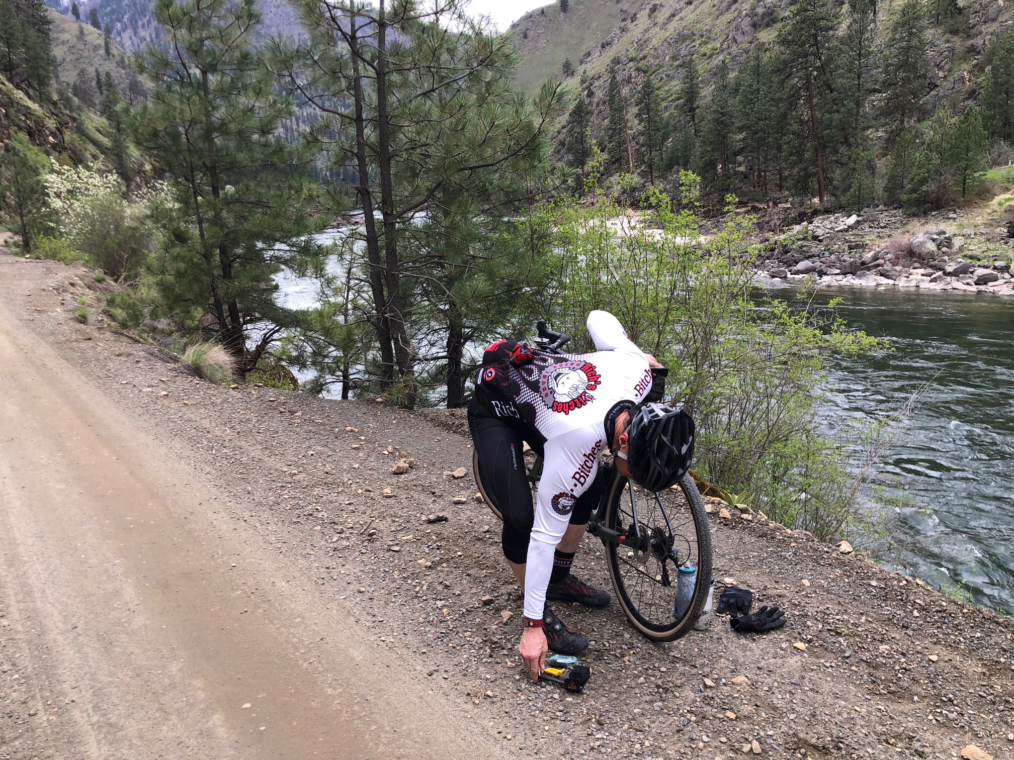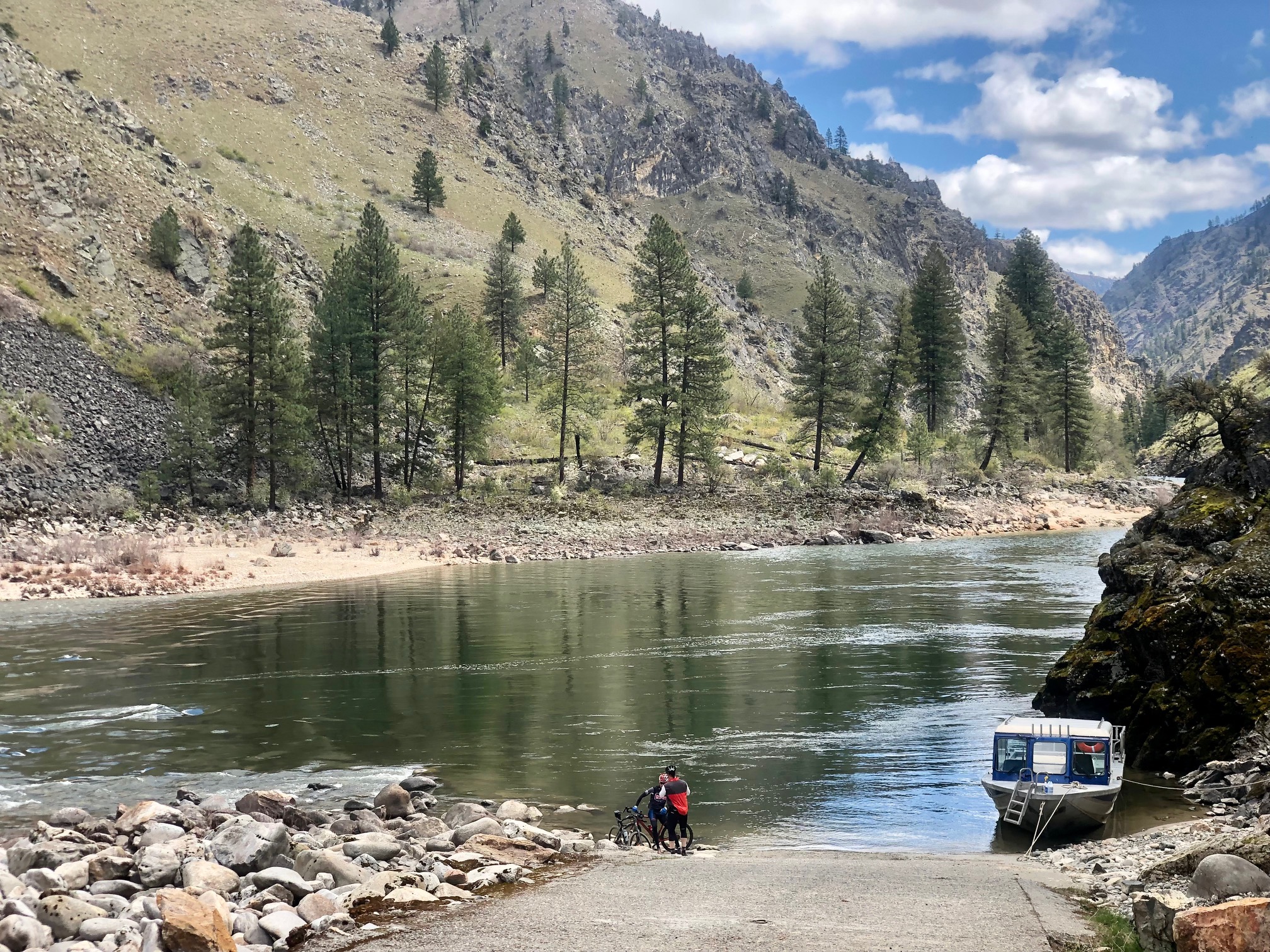 This is literally the end of the road. From here, the river continues into the roadless wilderness of Central Idaho. We dipped our wheels into the river and had a lunch break. About two weeks ago, I finished up an ITA project and we used a jet boat to come out of the wilderness. This was our finishing point and you can see that trip report here.