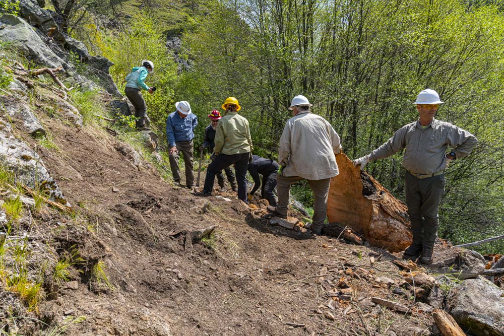 Job one, get this root ball out of the trail, a couple days earlier, one of our teams had made the cut but with only 3 team members, were unable to move the root ball.