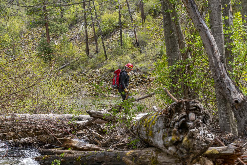 Now it was time to start working the 5 or so miles back to base camp. This is Amber crossing Bull Creek using one of the three creek crossing strategies, log crossing, wading, or rock hopping.