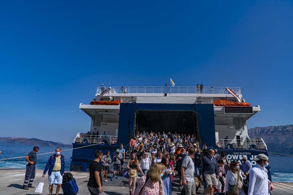 In Santorini, the overhead announcement said “Get off” in Greek and we were pushed off like a heard of cows. Literally 5 minutes later they were gone.