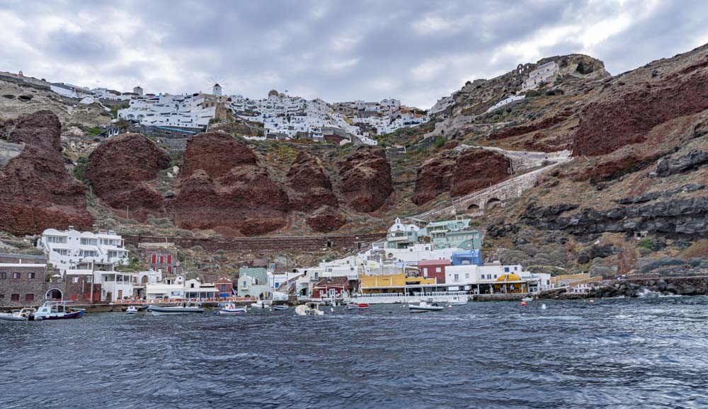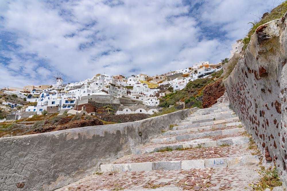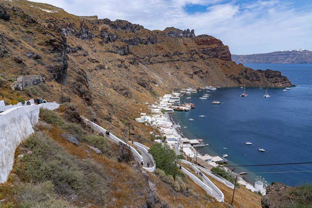 As we depart, we had a nice view of the village Oia. Notice the stairs zigging up on the right side…. more to come on those!