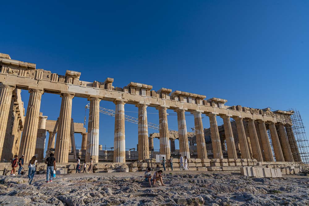 After a few twists and turns aside, we arrived at the top of the Acropolis near the Parthenon. To be clear, an Acropolis is a city’s high point and the Parthenon is the temple on top of Athen’s Acropolis.