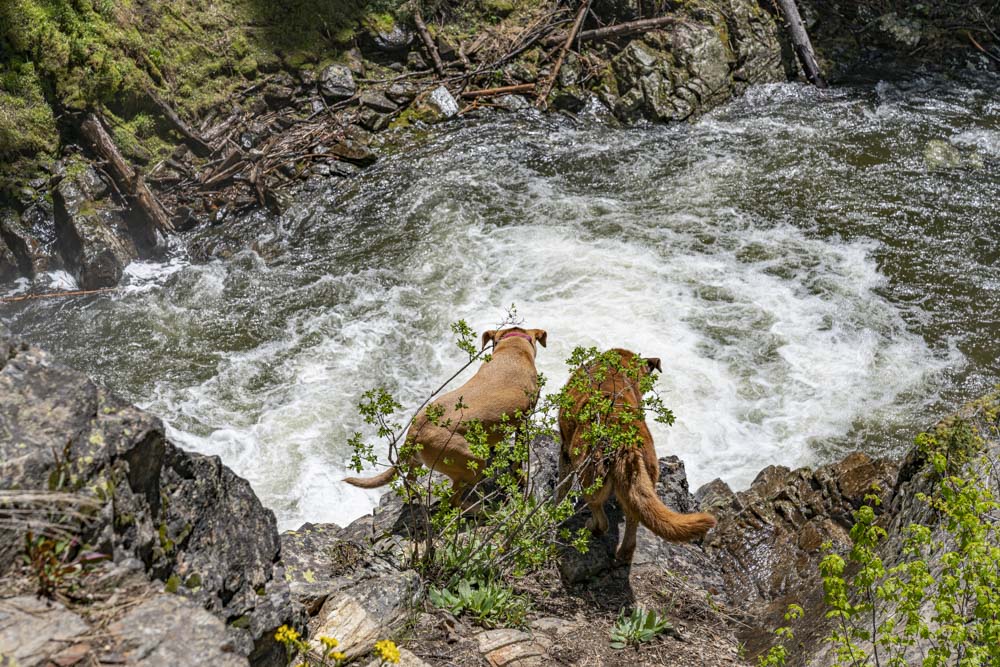 Dakota and Ruby look over the edge to the base of the falls, that is a little too close for me!