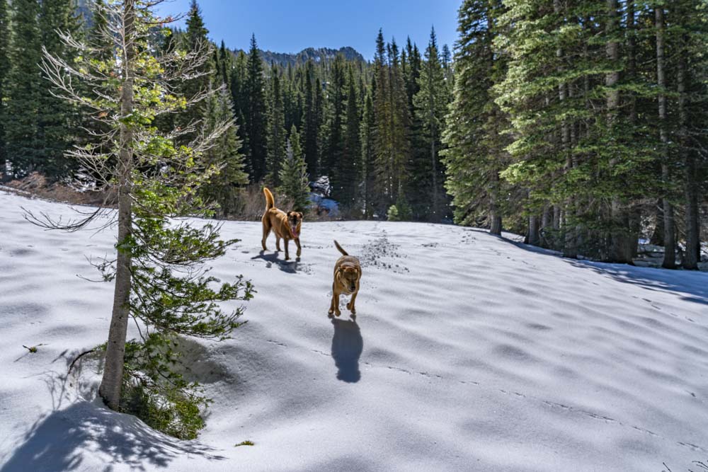 After about an hour of climbing, we hit continuous snow and the dogs loved it!