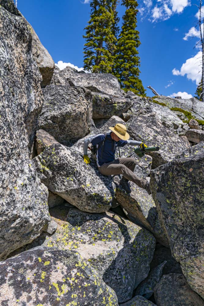 On the way back, Tom shows his famous crab walking technique in this boulder field.
