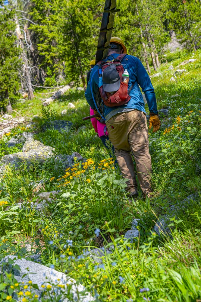 By Day 4, we had cleared the trail over 2 miles above Base Camp so a good long warm up hike was required to reach the next work section. The day before we had left all the tools up the trail so it was nice not carrying those.