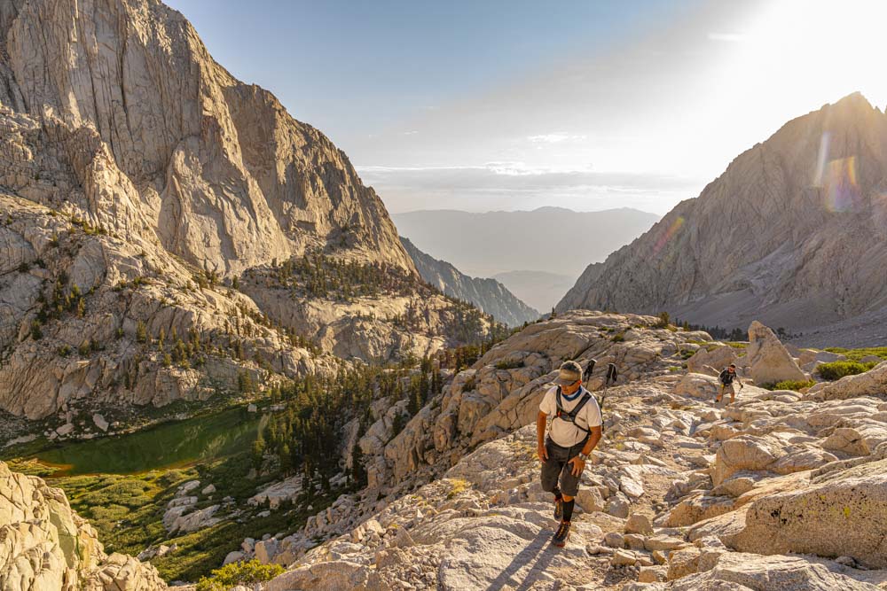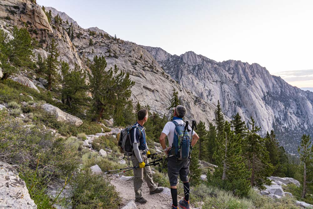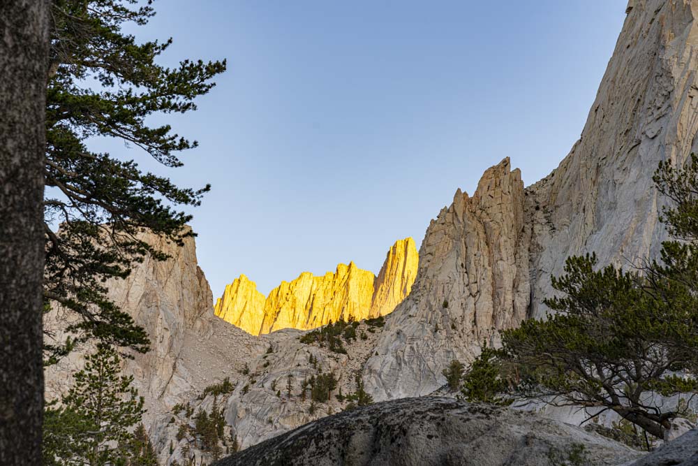 Looking upward, we are finally getting views of the Mount Whitney shoulder still many thousands of feet above.