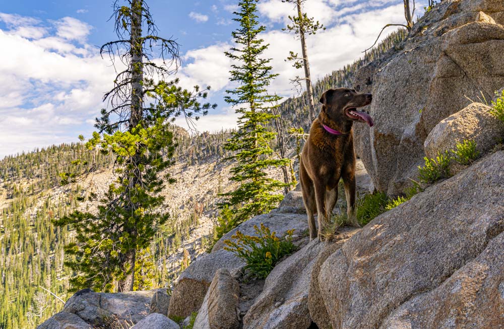 Up and over the headwall and Ruby scans Lake Thirty-three.