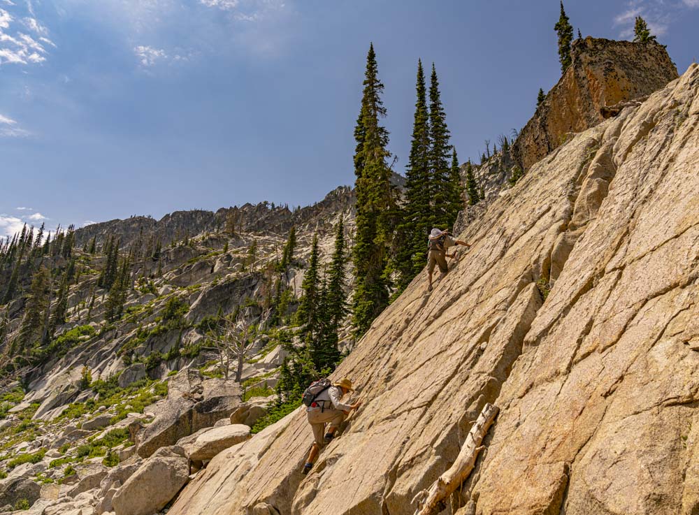 Art and Craig taking the rock climbing route back up the headwall.