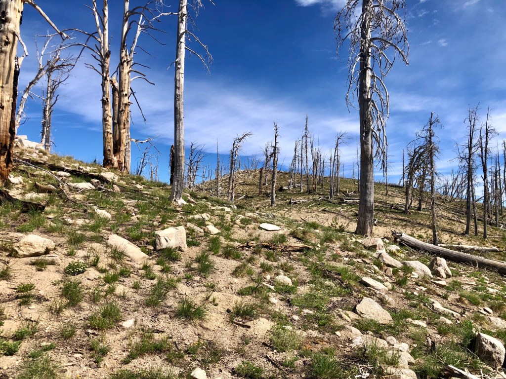 This area has obviously burned hard in the recent past but some live trees do exist in small pockets. In the wilderness areas, fires generally are allowed to burn uncontrolled as they would have pre-mankind.