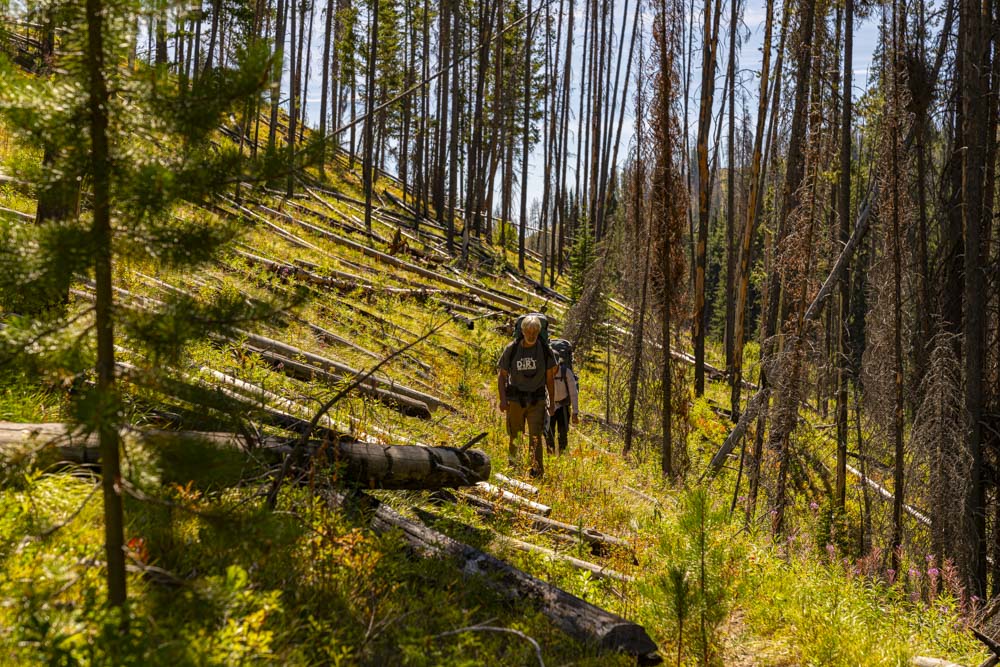 Hauling our backpacks with a week’s worth of supplies along with tools and our airport bags the 1 mile over this ridge to Stonebreaker was no easy task. It would be worth the effort on the last night as this ranch is an Idaho Gem!