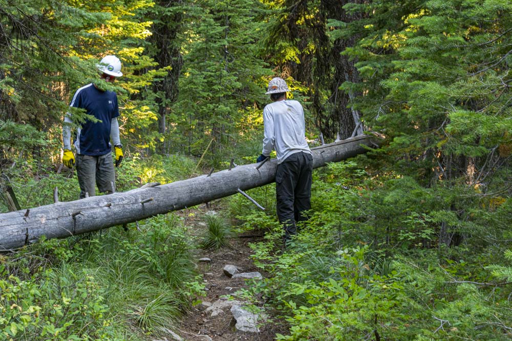 Yesterday, we had stashed the tools down the trail, we hiked back and the first log of the day was at hand.