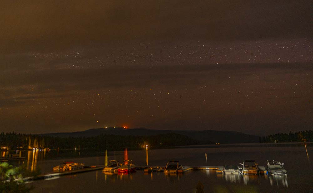 I’m interrupting my normal coverage of the ITA trip back to the Highline Trail to bring you coverage of a fire near McCall. We had a couple thunder storms blow through last night and I woke up this morning to a light glow on the horizon……. It appears we have a wildfire on the ridge above McCall.