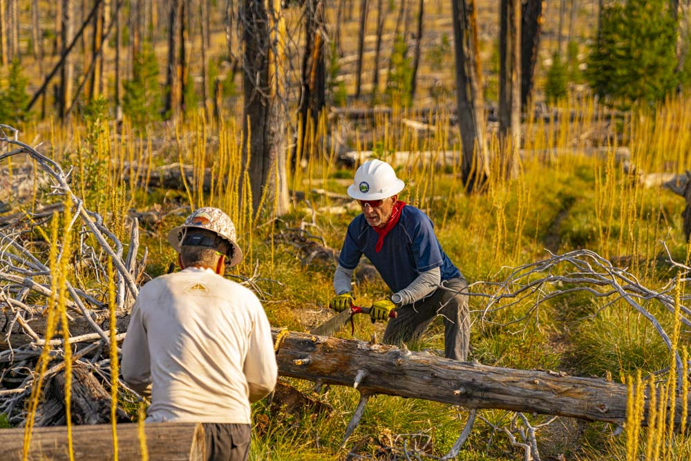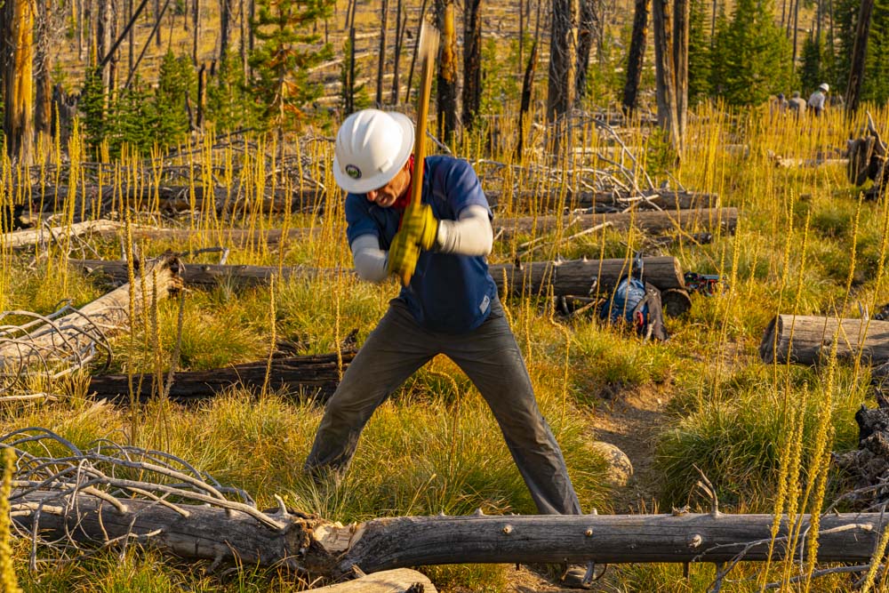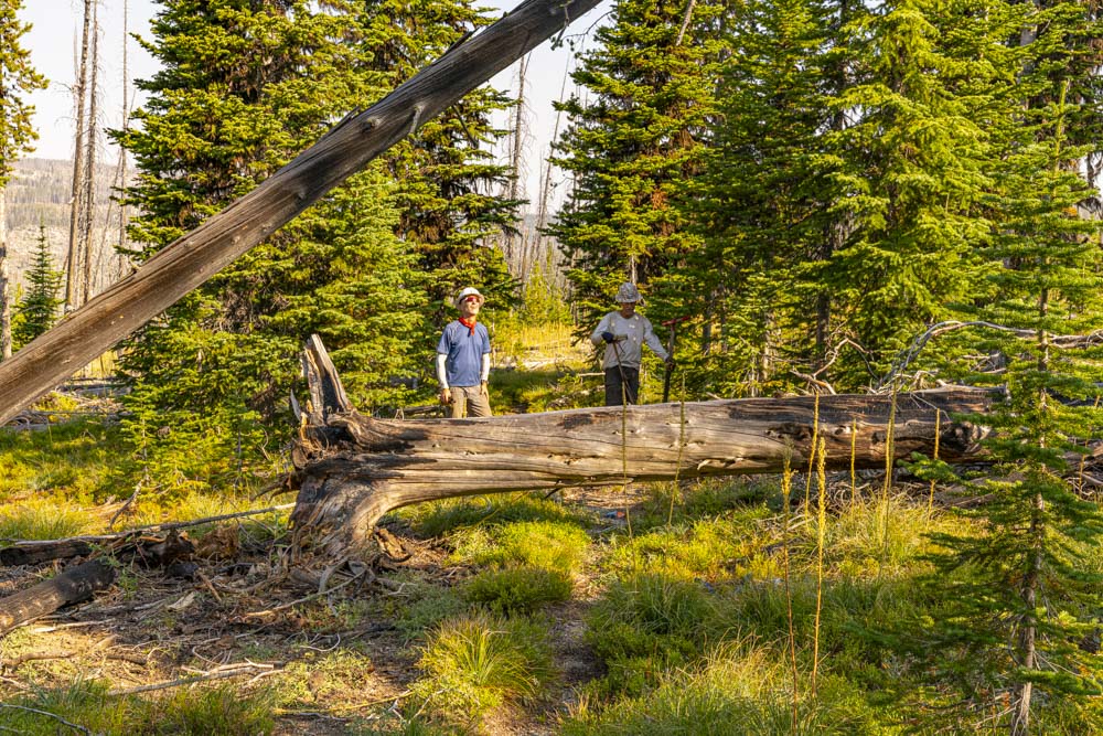 Most of the trees along the Highline trail are fairly thin Lodgepole Pines. This is one of the bigger cuts we needed to make….not a lodgepole.