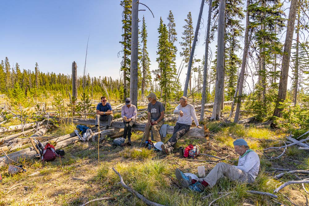 I forced the group to stop and pose for me. Notice that the wildfire smoke is starting to build in…..Also notice that Craig and Brians’ white shirts are getting dirtier every day.