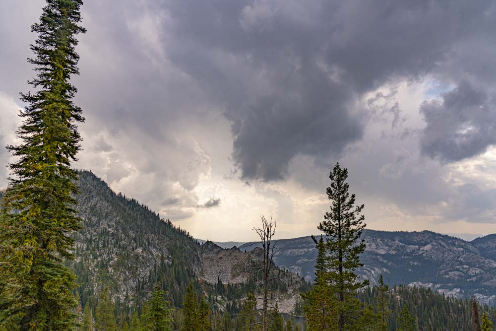 We began our final approach to Snowslide Summit and BOOM a clap of thunder. Behind us, some nasty weather rolling in. The summit of a peak is the last place to ride out a thunder storm so we backed off the mountain and ridge.