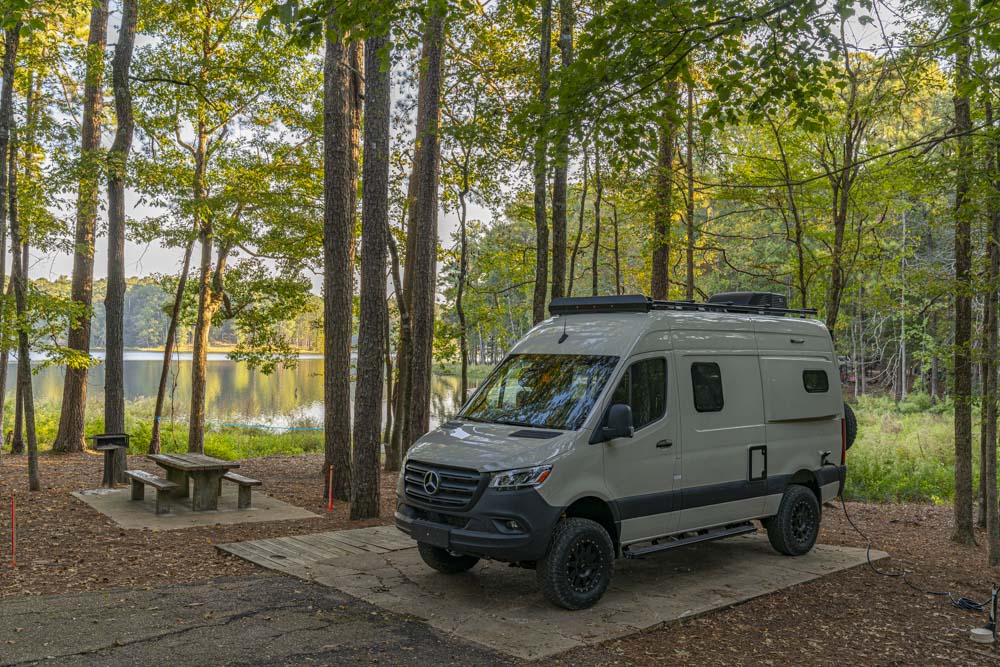 I picked it up yesterday in Jackson, Mississippi and now I’m “camping” at a local park for a test drive. I spent most of the evening checking out systems and getting settled in but there was a little time to shoot photography around Shadow Lake. You might note that unlike all of my other camping trips, a keen eye will pick out the electrical connection to the grid……I have all the comforts of home including AC.