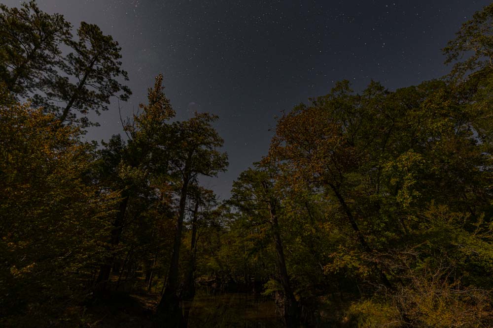 Shooting the night sky during a full moon makes the stars hard to see. It was a little eerie walking around the swamp during the full moon. There are lots of critters out there making strange noises! I was a little uncomfortable and definitely out of my element!