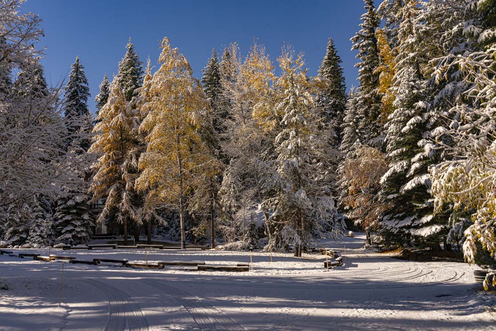 This snow has followed the warm October so most of the aspens and tamaracks have not yet dropped their leaves.