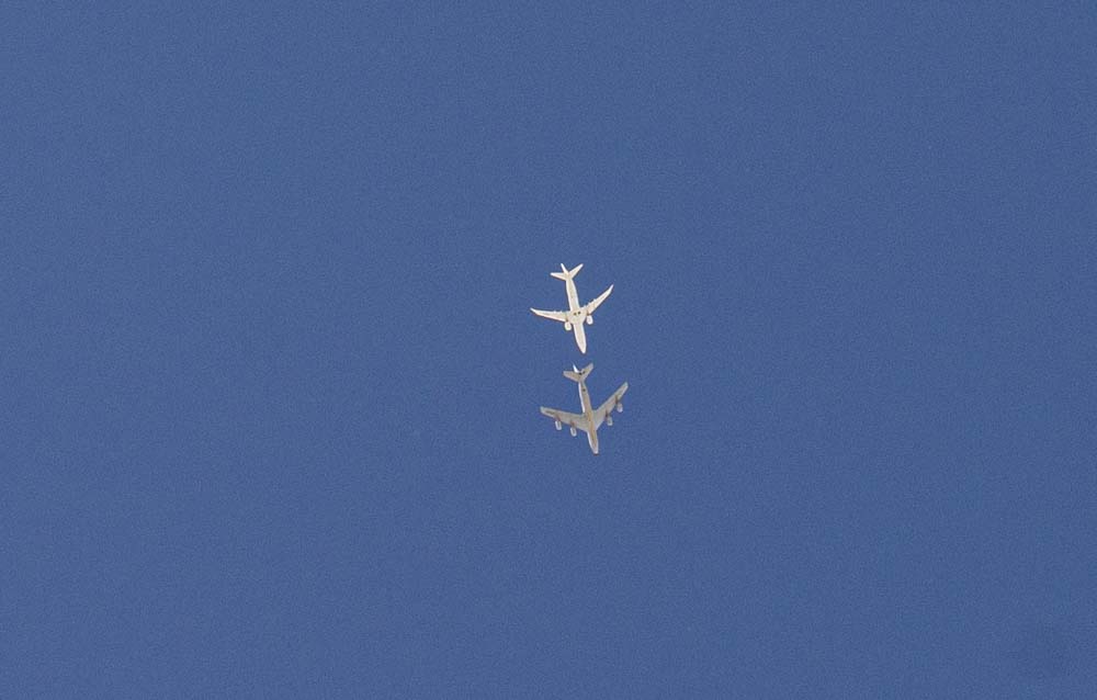 Finally, with the sound jets overhead, I turned and snapped this photo. This is not an uncommon scene here in Central Idaho as the Fairchild Air Force Base near Spokane, Washington is home to the Air Force’s refueling tankers. We frequently see them refueling aircraft while out hiking and biking.