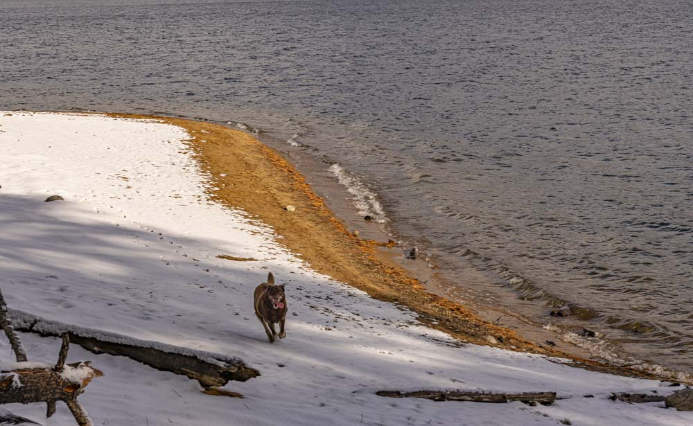 The Huckleberry Trail eventually come out along the lake onto a relatively secluded beach.