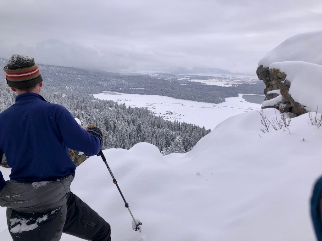 Since it is more or less full on winter here in McCall, I’m trying to hit all the favorite local winter hikes before I go back south to warmer weather. Up today, Payette Point or as some of the tourist call it……Egg Rock. The road over was a bit tricky as we had received about 6 new inches of snow earlier in the day.