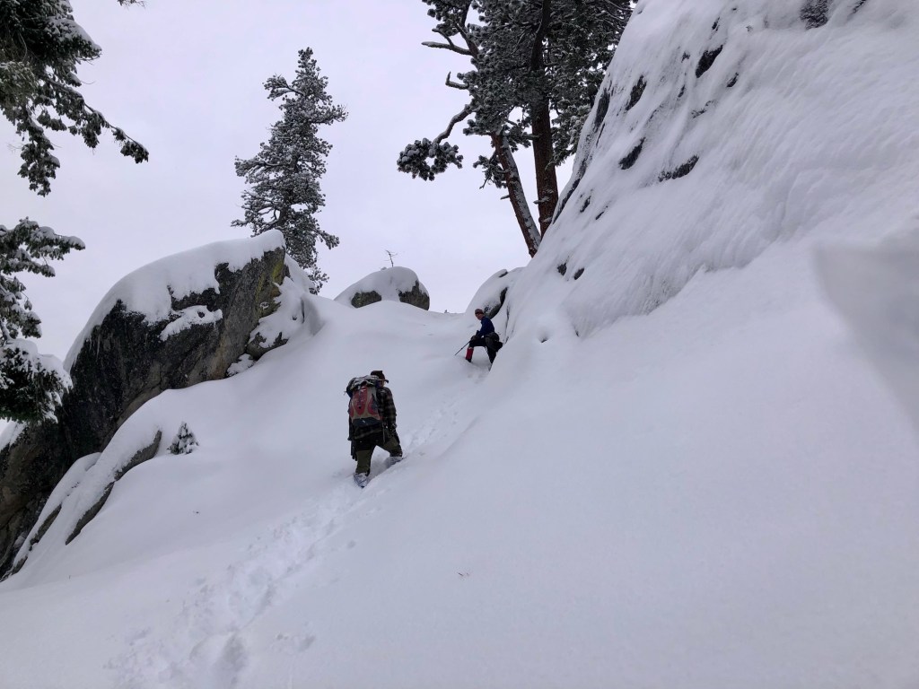 Near the top, we could see that the final rock summit move was not going to be possible today with the ice conditions.