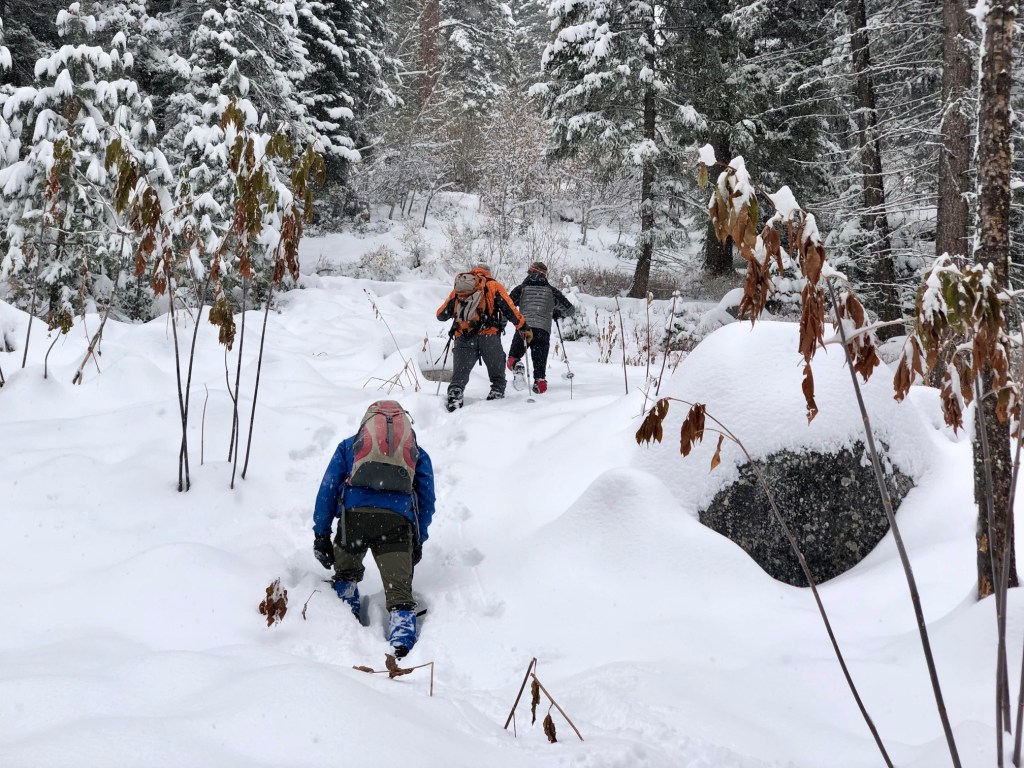 Tom, Art, Brian, and I started up the trail thinking we should have brought the snowshoes!