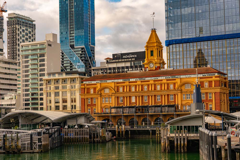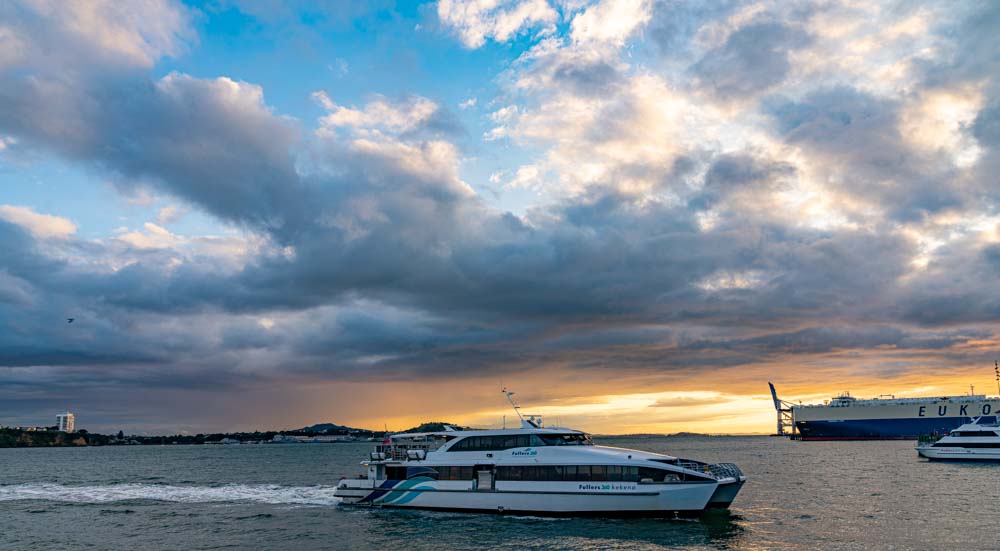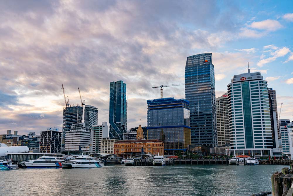 The morning clouds and light were stunning over Auckland Harbor and seaport.