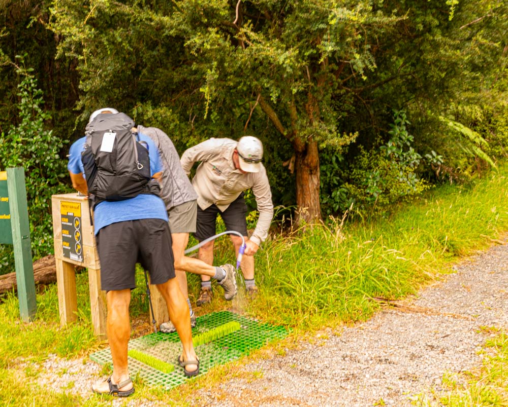 Around these parts, it is important to apply an anti-fungal solution to prevent the spread of diseases. These stations are located at every trailhead in these parts.
