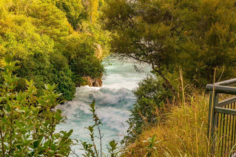 The outlet to Taupo Lake cuts though a lava field and creates a long high flow notch.