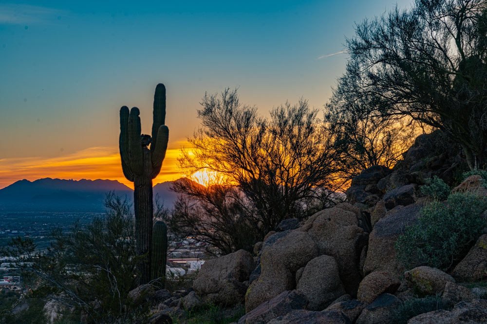It’s my last day here in here in Phoenix so I was up early to get some legit sunrise photographs. After a bit of a walk to the trailhead, it was time to work. The full moon was setting on Rose Garden Mountain.