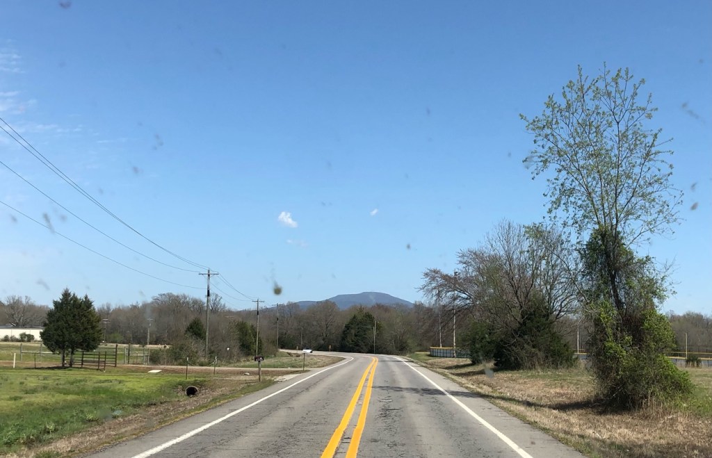 As some of my peeps have noticed, there has been a brief break in action here at Davefaitlemonde.com. Sometimes life throws you a few twists and turns that take you away from your focus….. It’s time to get out and adventure again! I’ve had this trip on the books for quite some time and wanted to get up here for years. Why Northwest Arkansas? A couple of reasons, Bentonville has a reputation as the mountain biking capital of the South. Also, the state high point is in this area so I will tag that along the way. After a goodly amount of driving from my home in Texas, there it is!!! I snapped this image through the bug stained windshield. Now, I realize that by Idaho standards, this doesn’t seem like much of a mountain but for someone who has spent most of the last few months in Southern Texas, I am fired up to see a bump on the horizon!