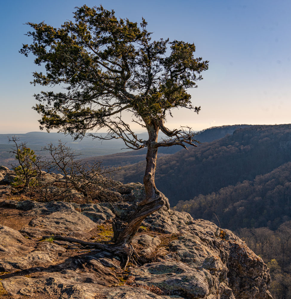 It’s interesting to see the pine trees down in the lower elevations and the hardwoods running up the mountain. It is still very early spring up on top.