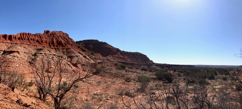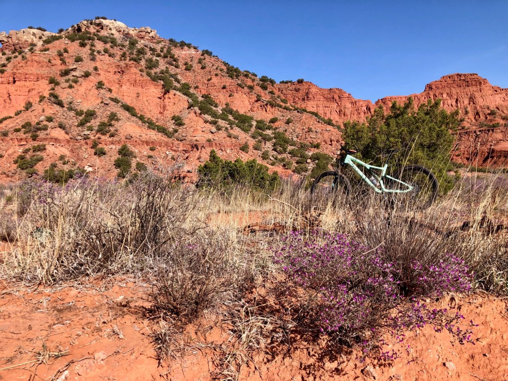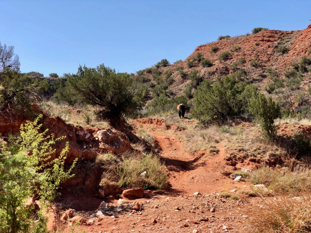 After dodging bison for the next hour or so, I ended up on top of the mesa and was ready for a ripping decent back towards camp….. If you look carefully you can see a bunch of moms and their babies standing in and around the trail…. I wasn’t about to mess with these mammas so backtracked and took a different route back to camp.