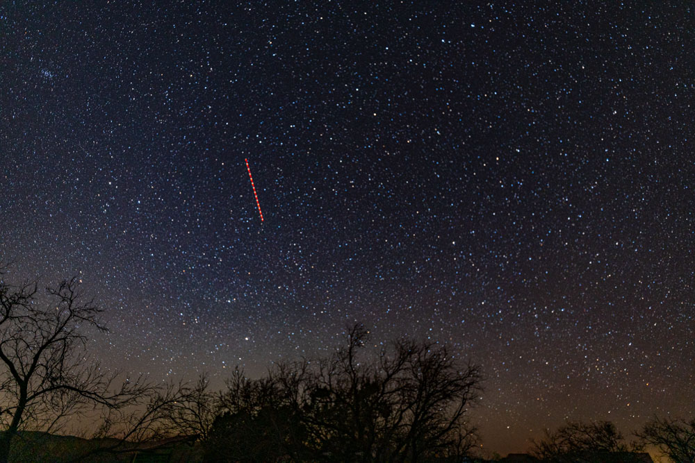 This day and age, it is often difficult to shoot the stars without capturing an airplane. These images have about a 20 second exposure so the blinking aircraft lights create a dotted line.