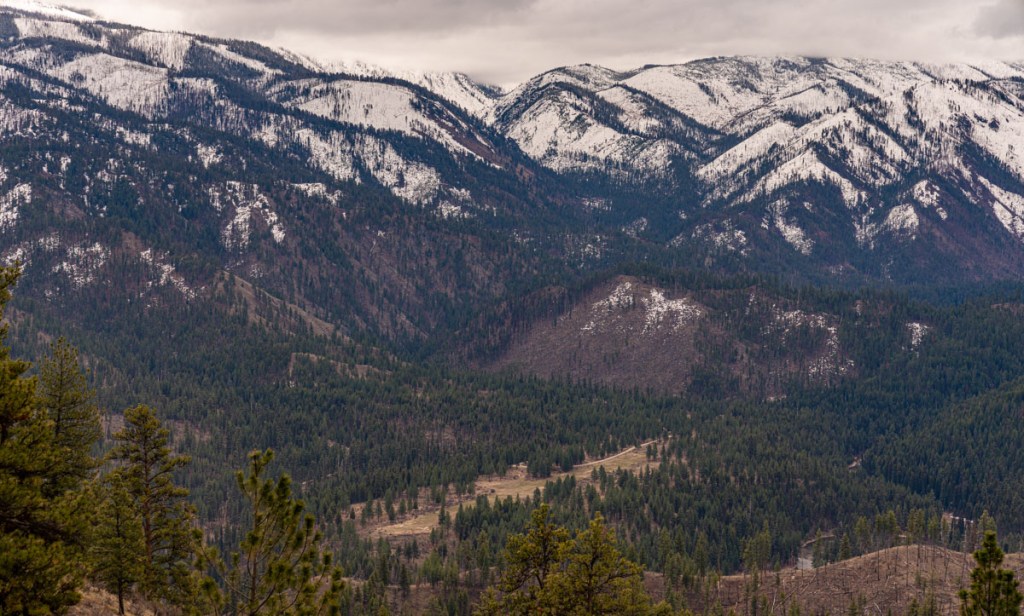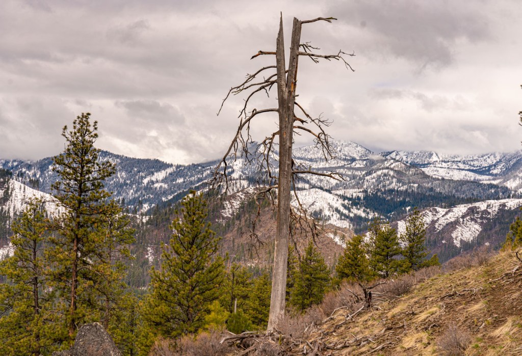 Looking north though the trees, the lower ridge and peak in the foreground is Krassell Knob, another potential peak for early season bagging. These low elevation peaks are in the 5500 to 6000 foot range and are right now just below the snow line…..mostly.