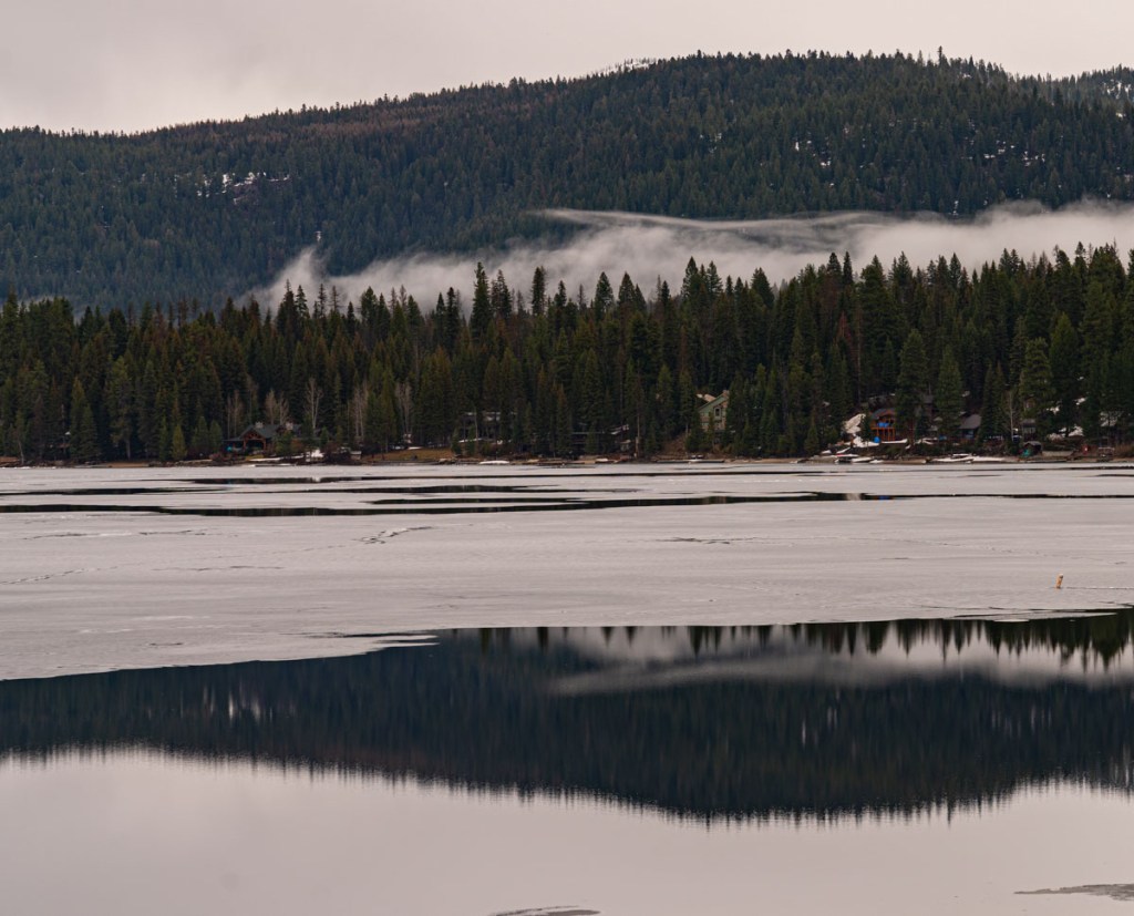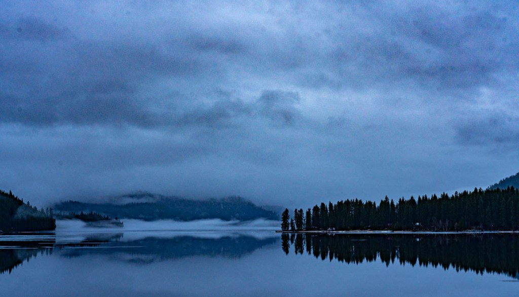 This morning, low clouds hang over the remaining lake ice and overcast skies promise more rain today.