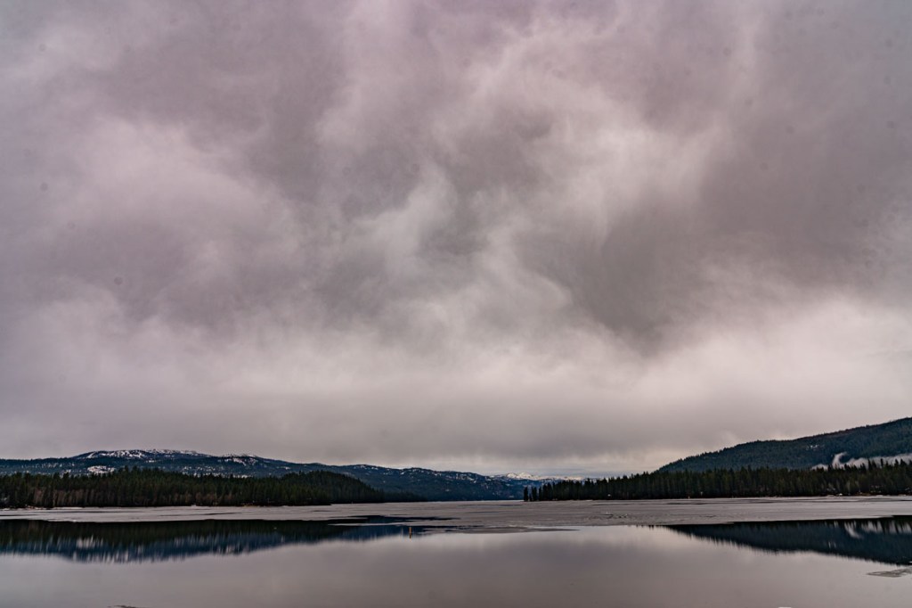 A little bit later, the ice recedes and a few claps of thunder roll across the lake.