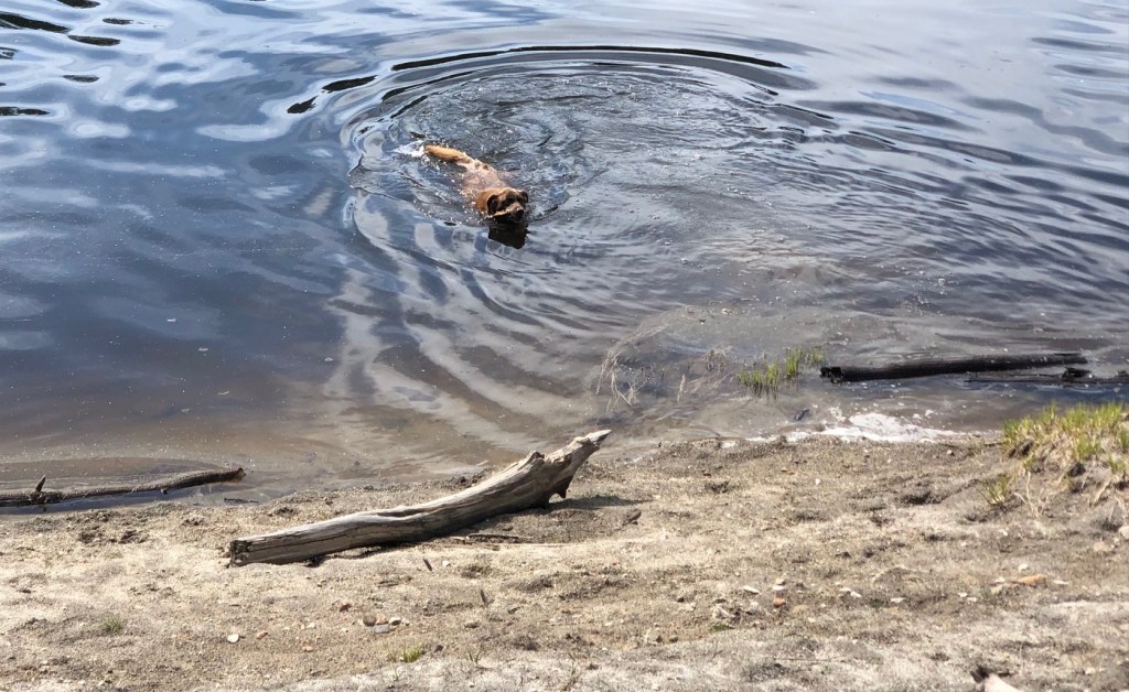 It was a warm morning so Dakota decided to take a swim. Even with her mink coat, surely the snow runoff filling the reservoir must have been cold!